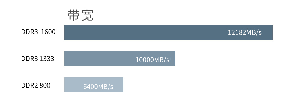 DDR3 1600 比 DDR3 1333和DDR2 带宽更高、性能更强