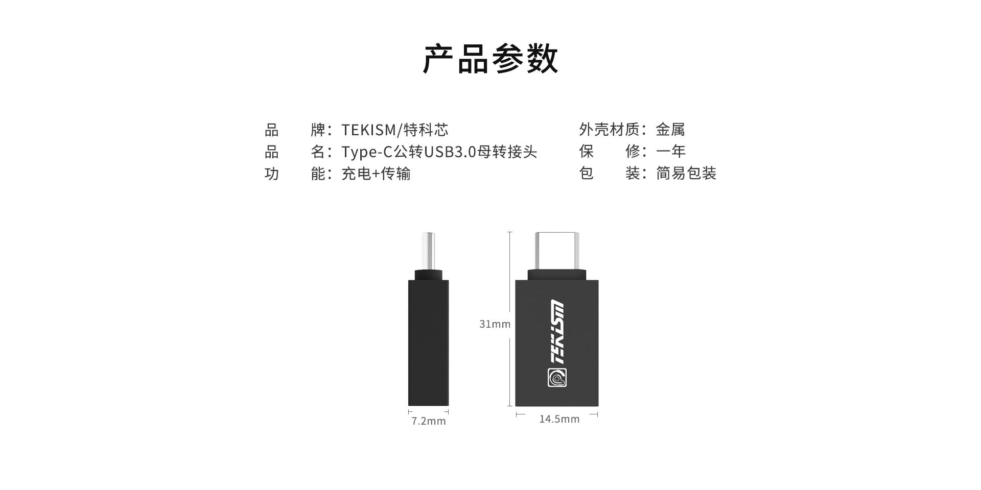 Type-C转USB3.0母 规格参数表