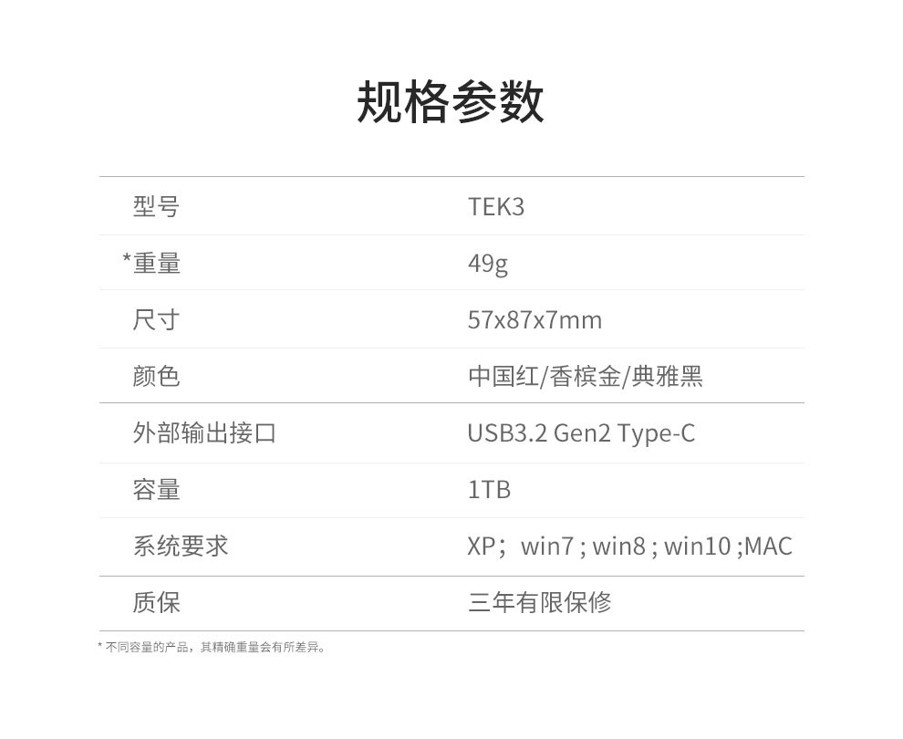 TEK3 规格参数表